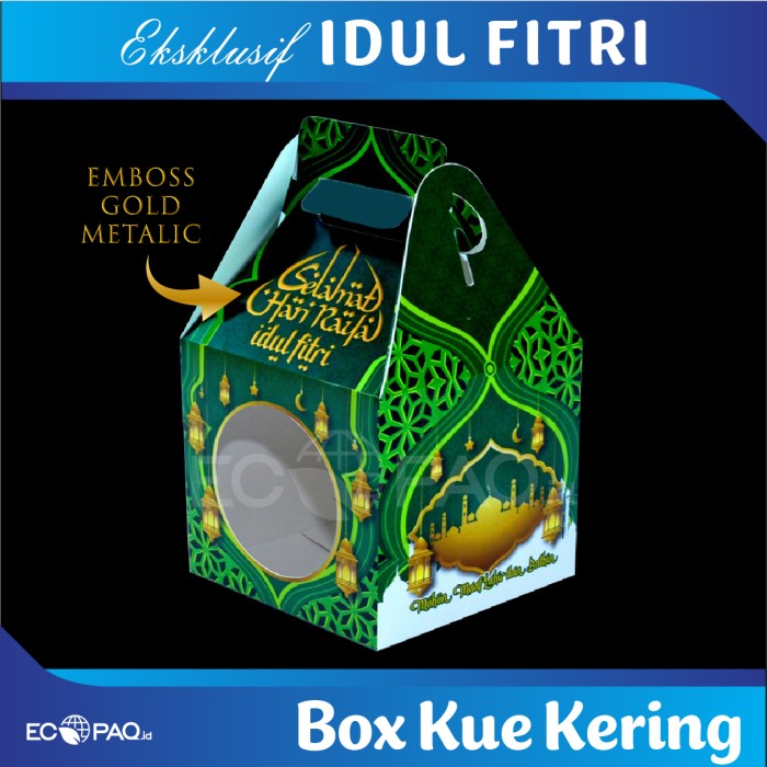 Box Kue Kering Motif Lebaran Hijau