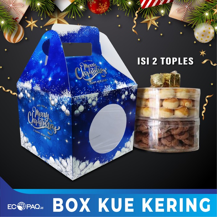 Box Kue Kering Motif Natal Biru