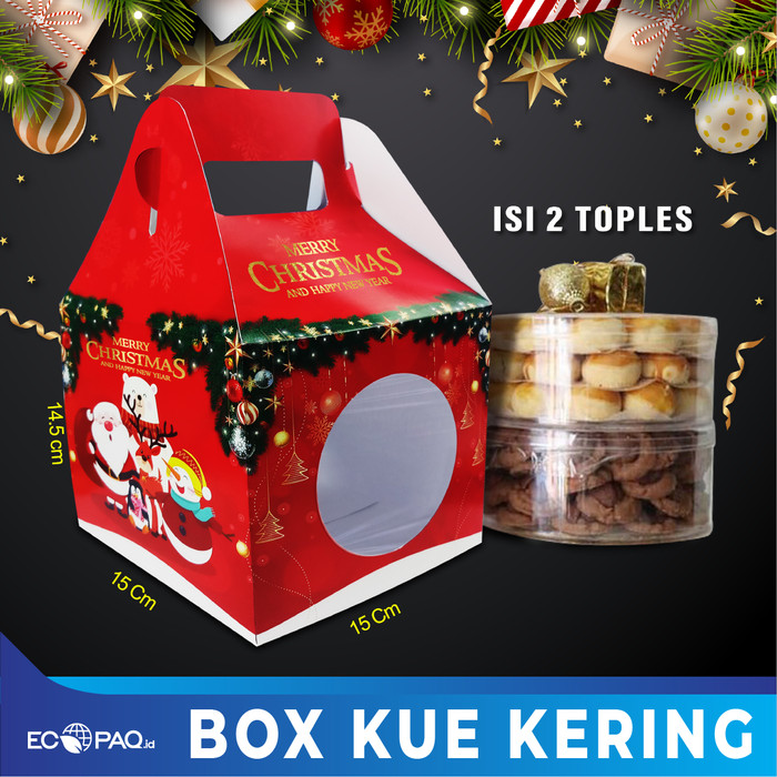 Box Kue Kering Motif Natal Merah