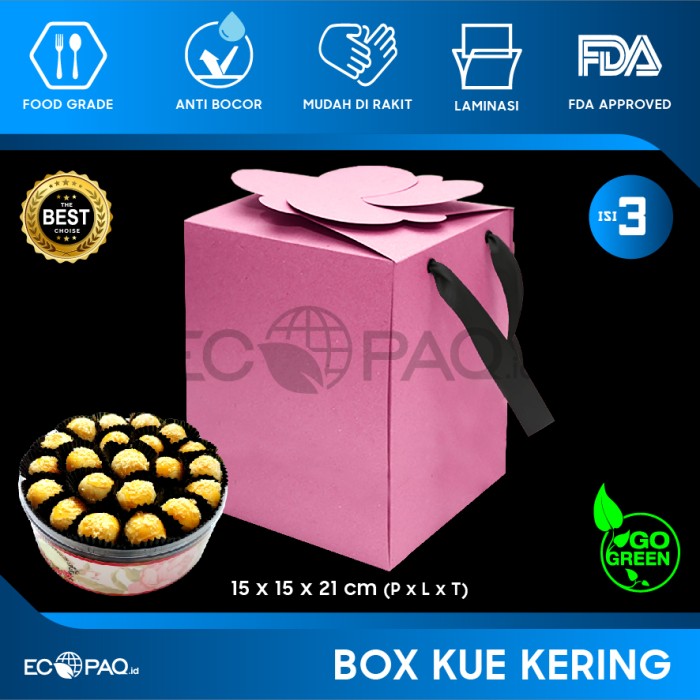 Box Kue Kering isi 3 Pink Metalik Jinjing
